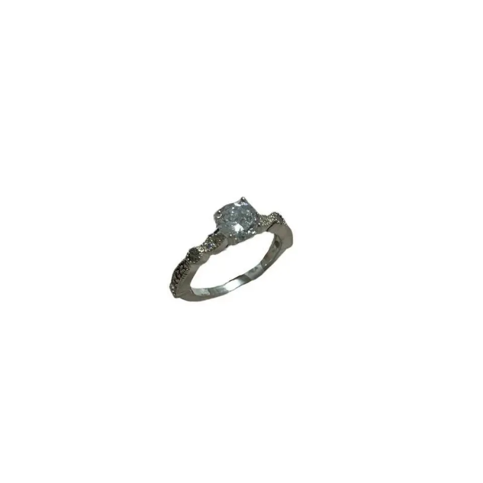 Anel solitário cravejado no banho de prata