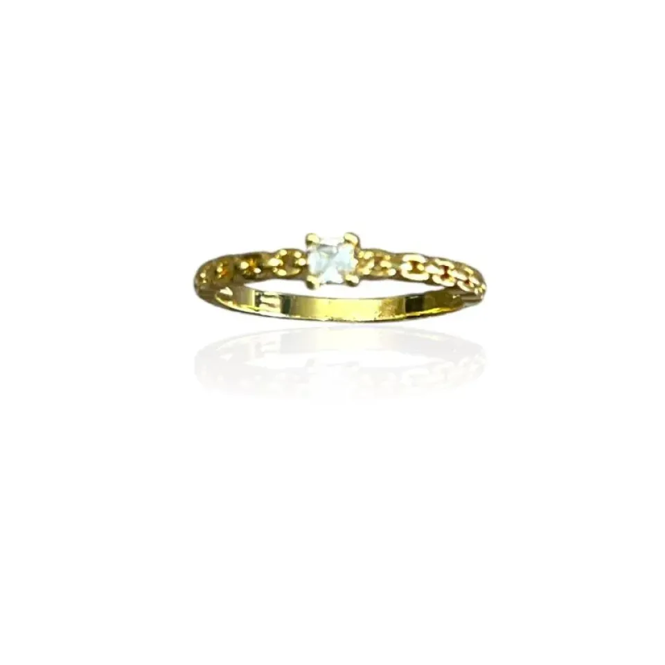 ANEL SOLITÁRIO QUADRADO COM ARO TRABALHADO