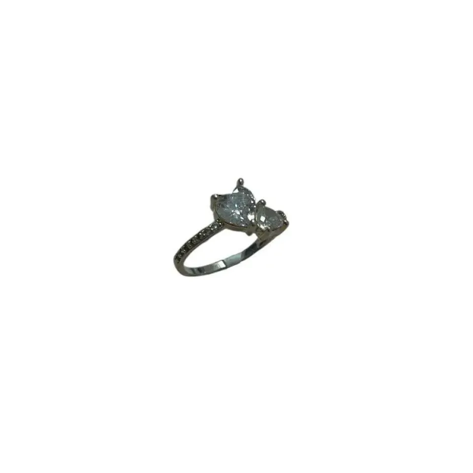 Anel prata 925 cravejado com 2 corações