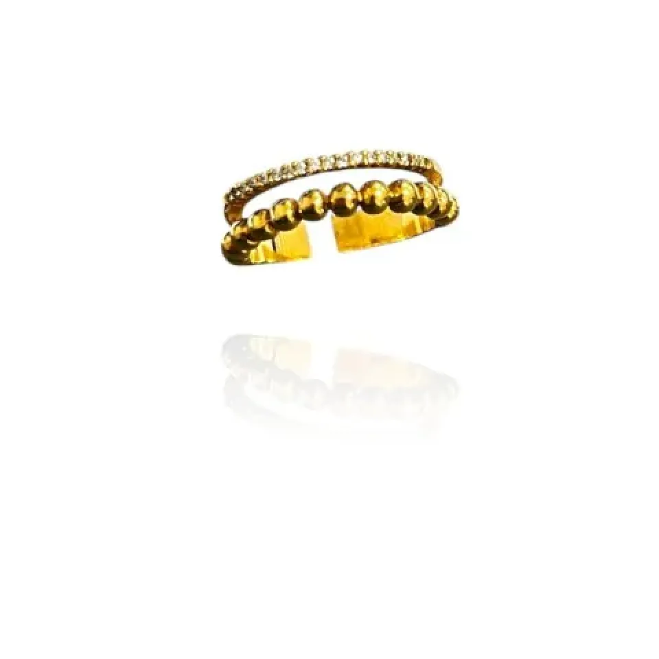 ANEL DUPLO C/ZIRCONIA E BOLINHAS