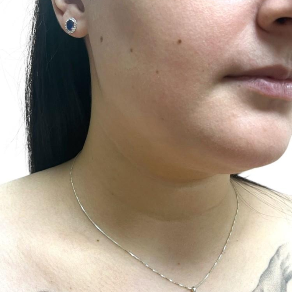 CONJUNTO OVAL EM PRATA 925 COM ZIRCONIA AZUL E CRAVEJADO COM MICROZIRCONIAS