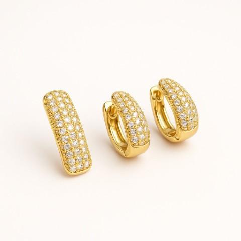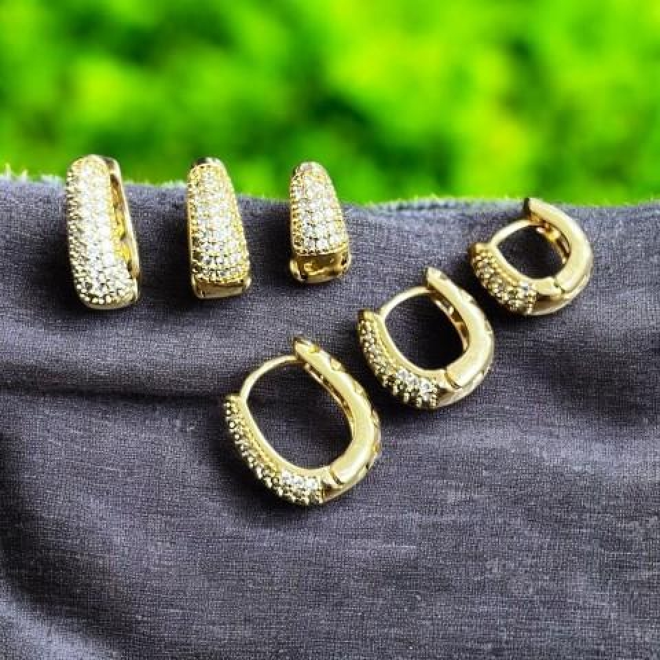 TRIO DE ARGOLAS CRAVEJADAS EM FORMATO OVAL, BANHADAS A OURO 18K